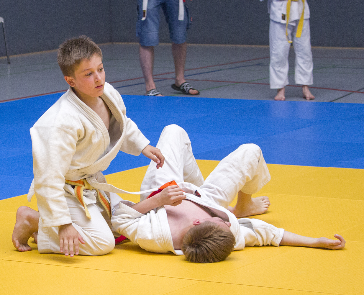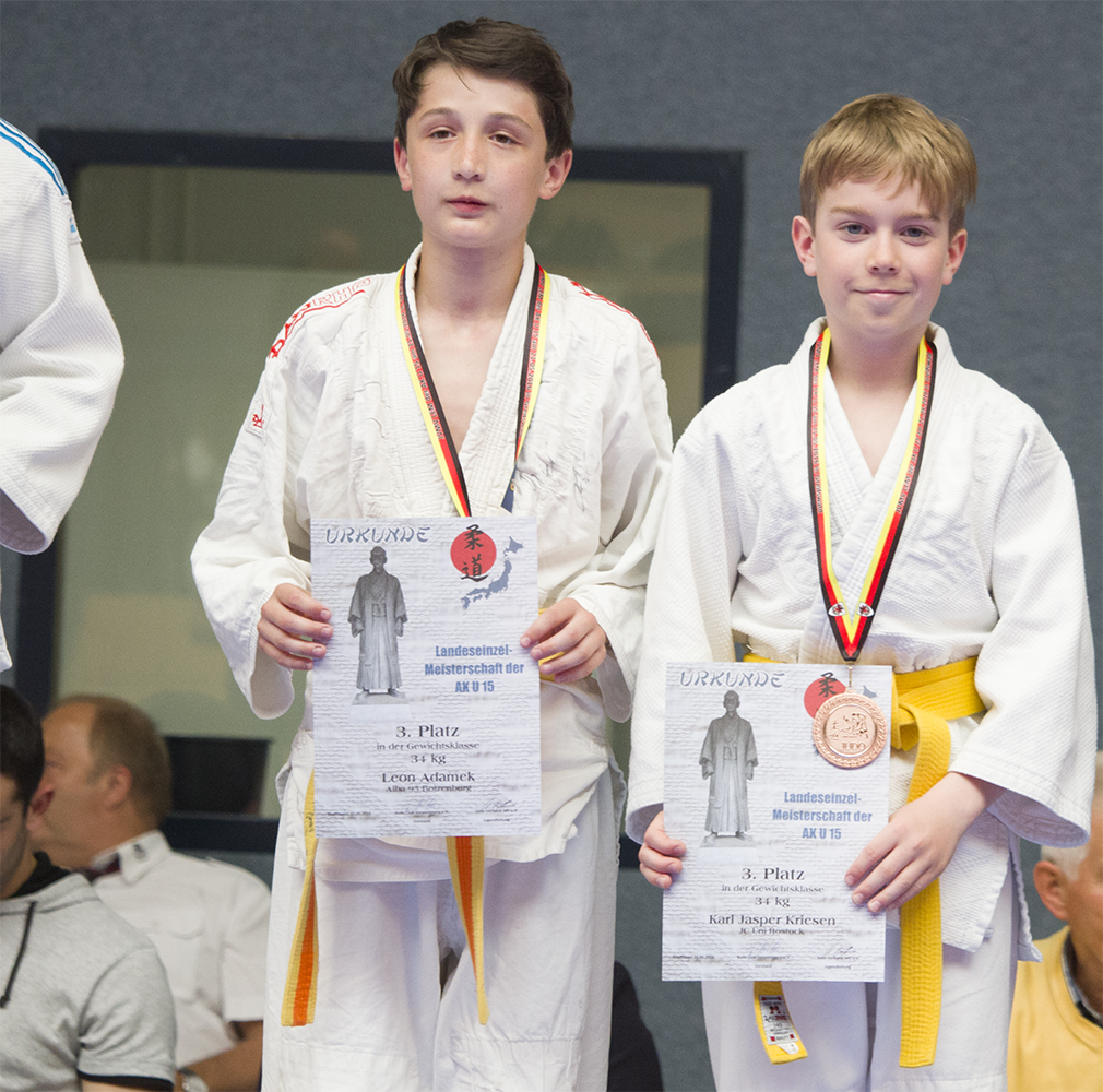 In der leichtesten Gewichtsklasse bis 34 kg ging Karl Kriesen an den Start. Zunächst musste er sich Leon Adamek von Alba 93 Boizenburg geschlagen geben. Im zweiten Kampf konnte Karl dann seine Stärke im Boden unter Beweis stellen und siegte mit einem tollen Umdreher und anschließender Kesa-gatame gegen Anton Urbanek vom PSV Neustrelitz.